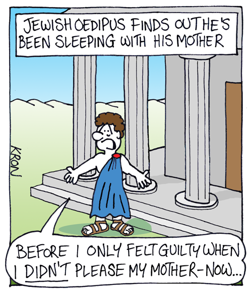 Doing this cartoon reminded me of the classic Woody Allen film “Oedipus Wrecks”, check out a segment here.