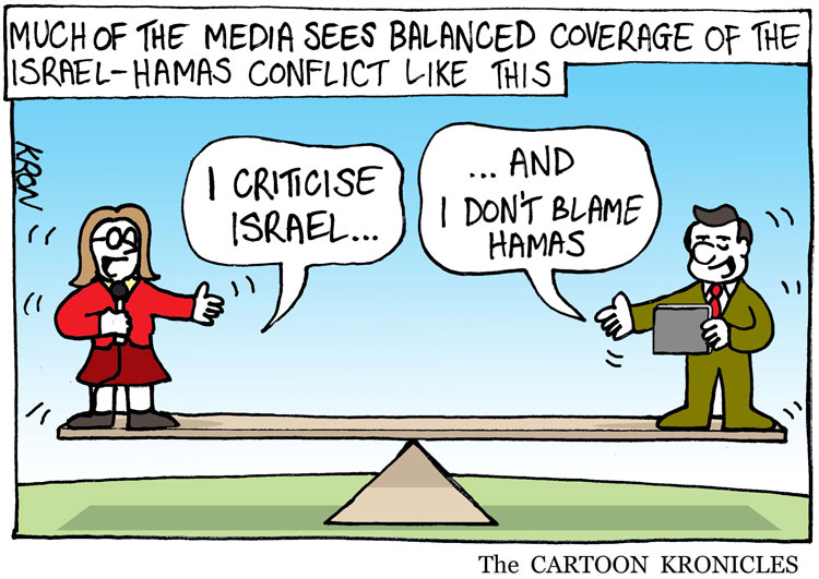 Newsworthiness is usually based on man-bites-dog stories. This is a media-bites-Israel story.