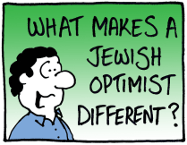 I had fun with this cartoon, not just because I got to the essence of Jewish optimism, I managed to draw the Jewish optimist’s facial expression just how I wanted it.