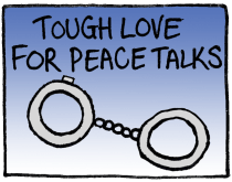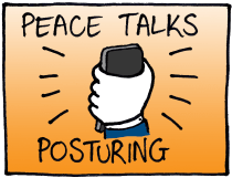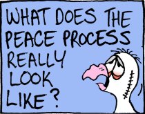 Related article: ‘With Kerry en route, Israelis and Palestinians trade barbs.’ June 27 2013, Times of Israel http://www.timesofisrael.com/as-kerry-returns-to-region-sides-trade-barbs-call-for-peace/ I drew this cartoon because I was thinking about how Kerry says there’s an urgency to start the peace talks, so maybe
