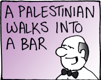 “French experts say Arafat wasn’t poisoned.” December 3 2013, Times of Israel. http://www.timesofisrael.com/report-french-experts-say-arafat-wasnt-poisoned/ I considered drawing this joke: A Palestinian horse walks into a bar (reading a newspaper with the headline ‘Israel didn’t poison Arafat‘) and the bartender says “Why